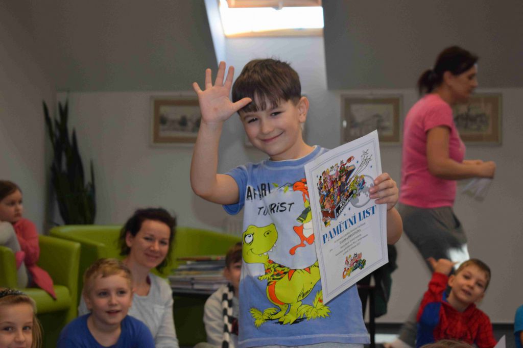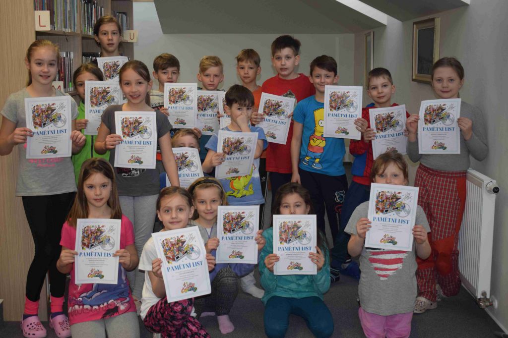 úkoly a zapojily se do všech her a kvízů. Povídali jsme si, hráli hry, soutěžili a četli si pohádky. Myslím, že jsme si noc v knihovně všichni moc užili. A ani mobily a tablety nám nikomu nescházely.